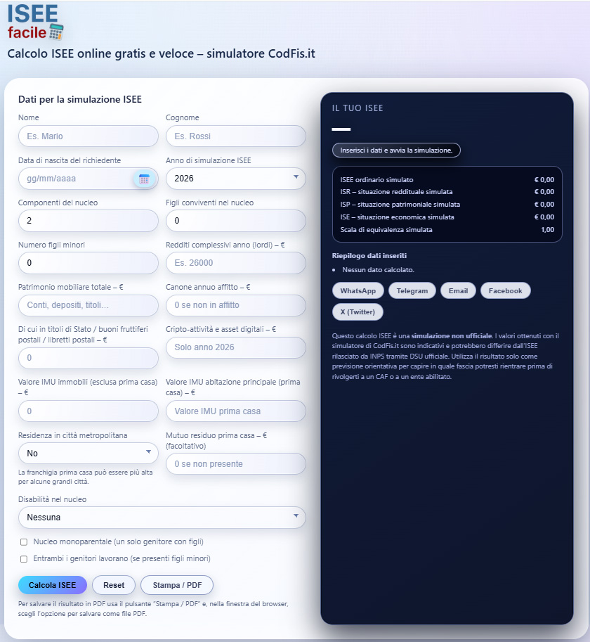 Il simulatore ISEE di CodFis.it è aggiornato al 2026