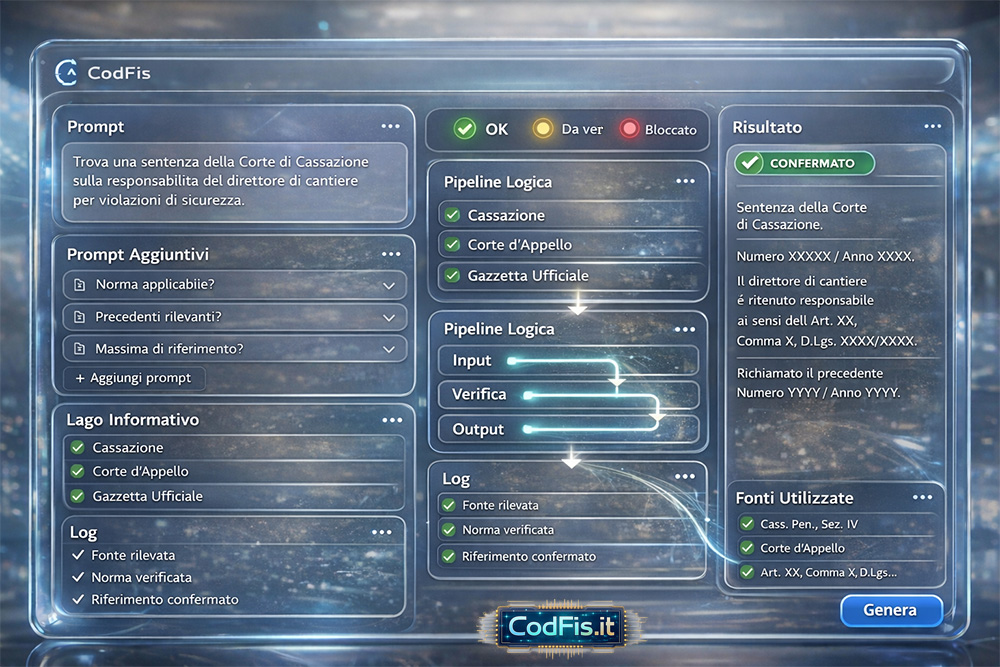 Quando chiediamo il riferimento a una sentenza, articolo di legge o massima stiamo esigendo un oggetto che non tollera “plausibilità”. Nel diritto non basta suonare bene: serve riferibilità, serve rintracciabilità, serve coerenza con un quadro normativo e gerarchico. Un modello generalista, lasciato libero, può generare un testo perfetto nella forma e inesistente nella sostanza. È qui che la parola allucinazione diventa un rischio concreto: ti costruisce una verità processuale finta ma credibile.